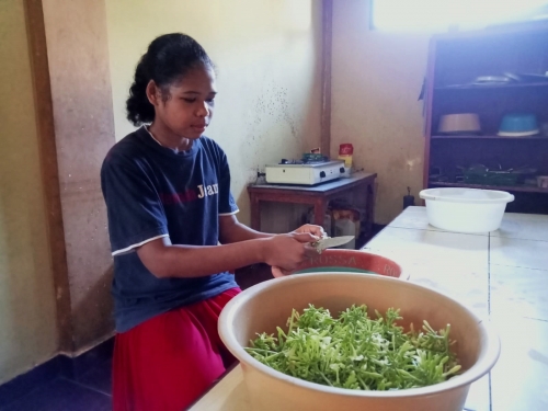 Anak-anak belajar untuk bersyukur dan bertanggung jawab dalam melayani sesama dengan kegiatan memasak.