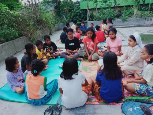 Anak-anak di ajak untuk belajar sharing tentang pengalaman hidup sehari-hari dan belajar memaknainya. Selain itu mereka juga dapat belajar mengutarakan pendapat.